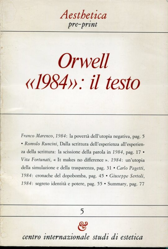 “Orwell ‘1984’: il testo : interventi introduttivi alla omonima Giornata di studio promossa dal Centro internazionale studi di estetica, Palermo, 10 marzo 1984, nella ricorrenza del romanzo di George Orwell” è stato aggiunto al tuo carrello. Visualizza carrello