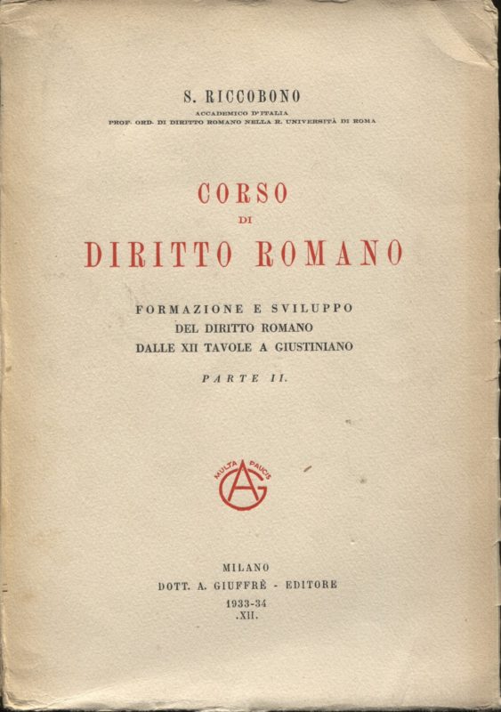 In 8, pp. XV+734. Brossura. Dattilo. Copia n. 745. Abrasioni lungo il dorso e lievi bruniture ai lati della cop. posteriore. In Appendice “Frammenti del Gaio Alessandrino” brossura Buono (Good) (6525)