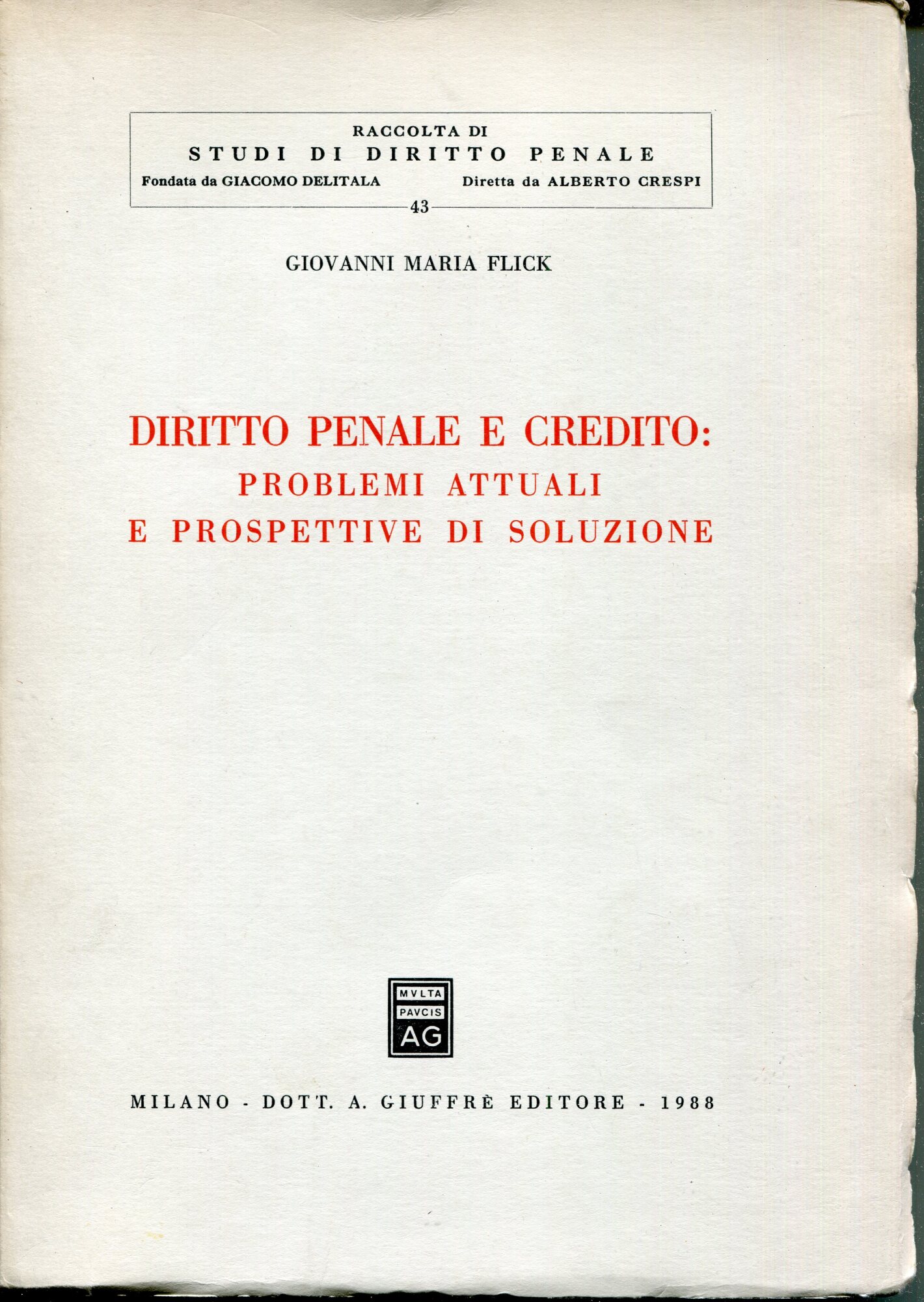 Diritto penale e credito : problemi attuali e prospettive di soluzione : scritti 1980-1988
