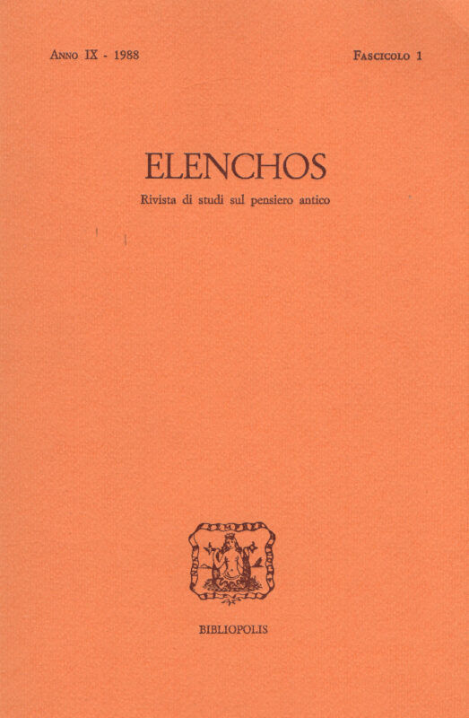 Elenchos. Rivista di studi sul pensiero antico. Anno IX – 1988. Fascicolo 1