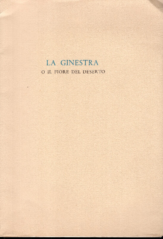 In 4, pp. 26, brossura editoriale con velina protettiva. Edizione di 90 esemplari fuori commercio. Velina con alcuni strappetti, altrimenti in ottimo stato. brossura Ottimo (Fine) (389)