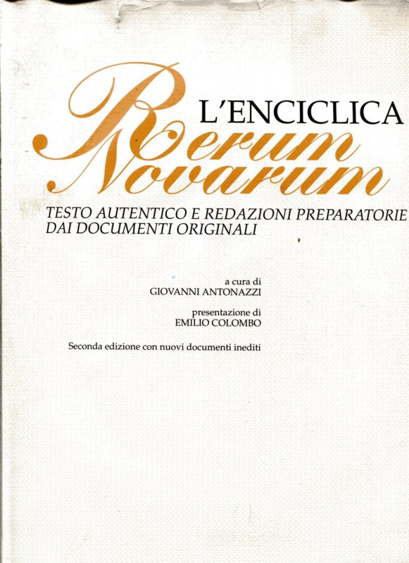L’enciclica Rerum novarum. Testo autentico e redazioni preparatorie dai documenti originali. A cura di Giovanni Antonazzi ; presentazione di Emilio Colombo. Seconda edizione con nuovi documenti inediti