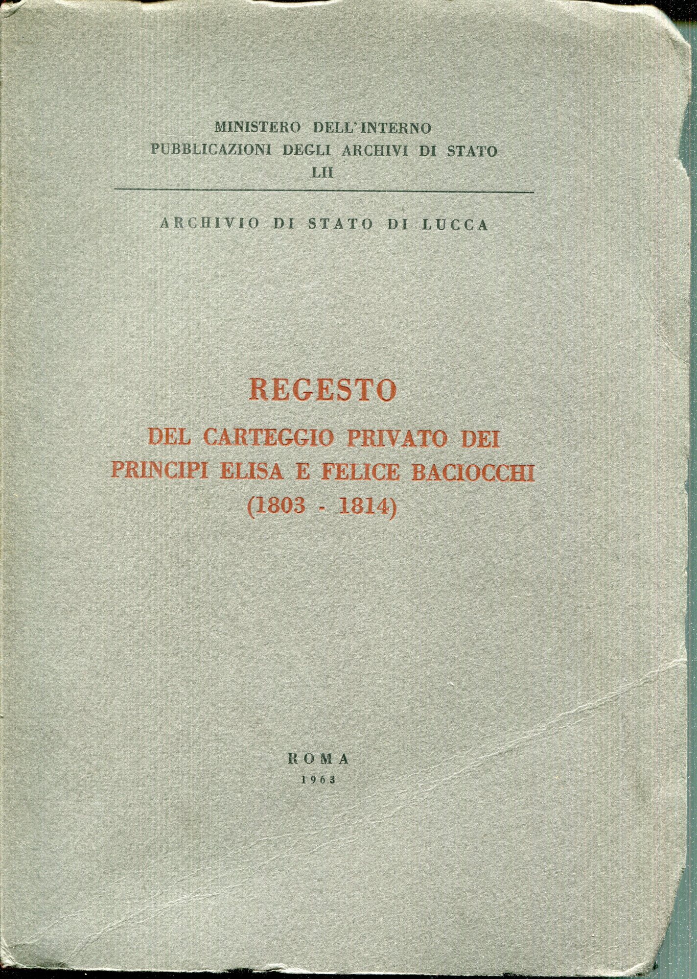 Regesto del carteggio privato dei principi Elisa e Felice Baciocchi : 1803-1814