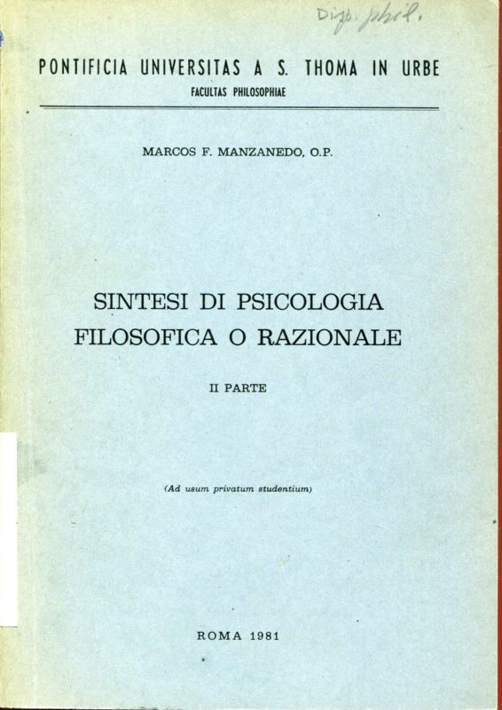 Sintesi di psicologia filosofica o razionale. Parte I e II. Ad usum privatum studentium