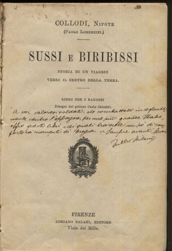267 p. : illustrazioni nel testo ; 19 cm. Rilegatua coeva mezza tela e oro. Lunga dedica anonima “A voi, valorosi soldati..” sotto al titolo. Qualche rara e lieve brunitura rilegato Buono (Good) (7224)
