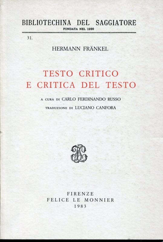 XIV, 90 pagine, 19 cm. Brossura, timbro “Copia per il recensore” all’antiporta, data 6 dic.1983 all’interno della copertina posteriore brossura Molto buono (Very Good) (7627)